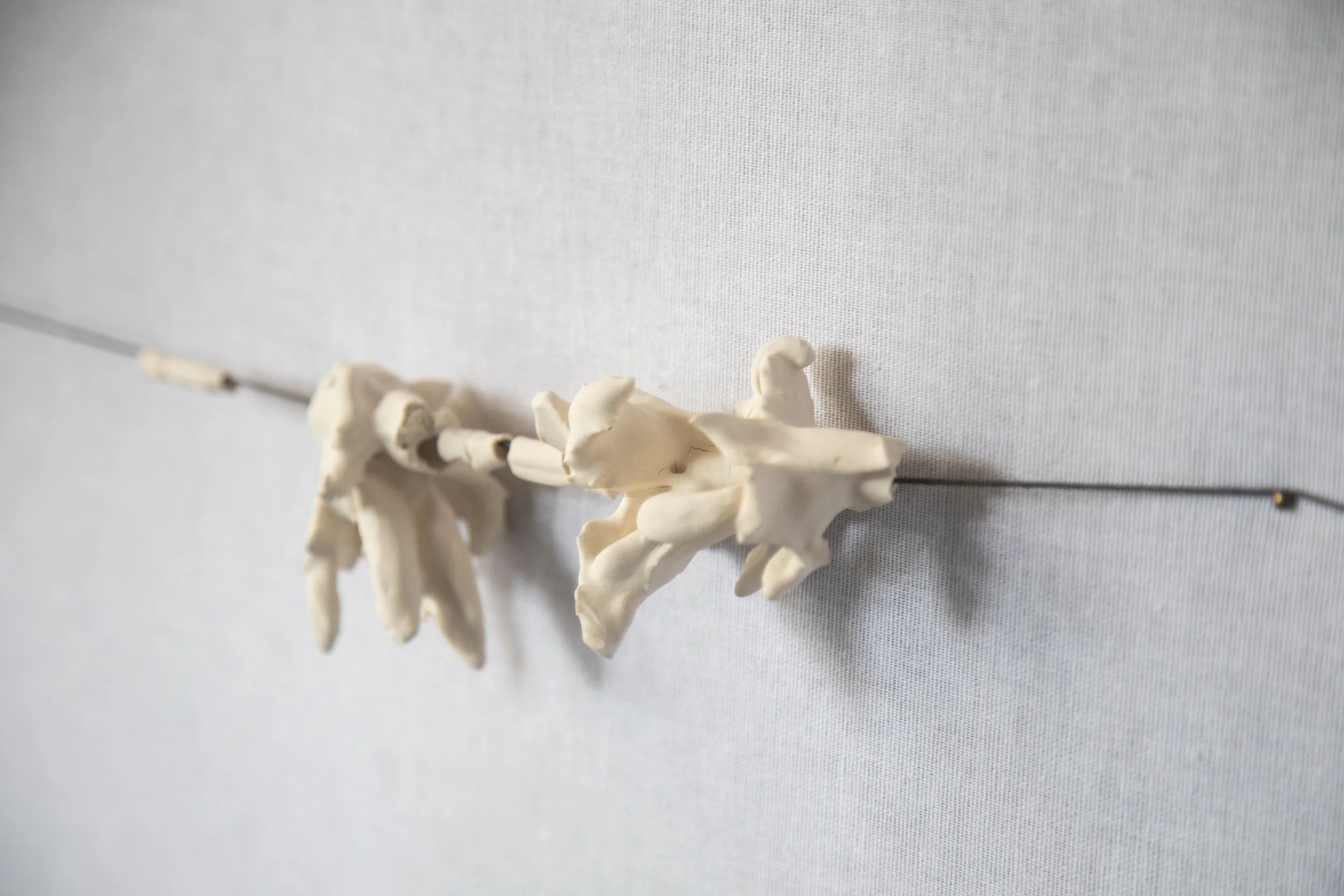 Sa perception onirique du réel, les sensations du souvenir, l’attachement à l’enfance et à sa sauvagerie, font naître des pièces fragiles et indociles mêlant souvent végétal et porcelaine. Les mots sont indissociables de son exploration.